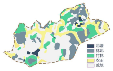當(dāng)?shù)毓I(yè)發(fā)展較為落后,沒有集約化重工業(yè)。區(qū)域用地性質(zhì)以竹林、農(nóng)田、林地、荒地為主,其中農(nóng)田主要分布在山谷區(qū)域,主要以梯田、水田形式,為季節(jié)性泛濫農(nóng)業(yè)用地。山地區(qū)域主要以竹子、鄉(xiāng)土林、果林、荒地為主,其中竹子、鄉(xiāng)土林面積較廣。(見圖2)
