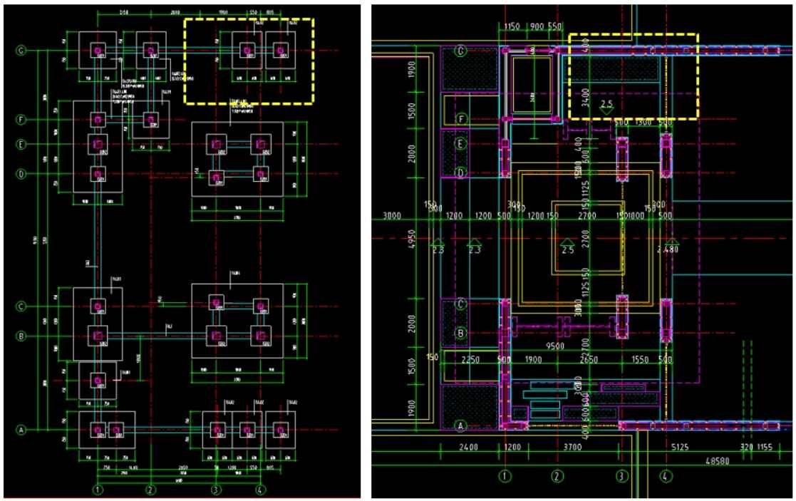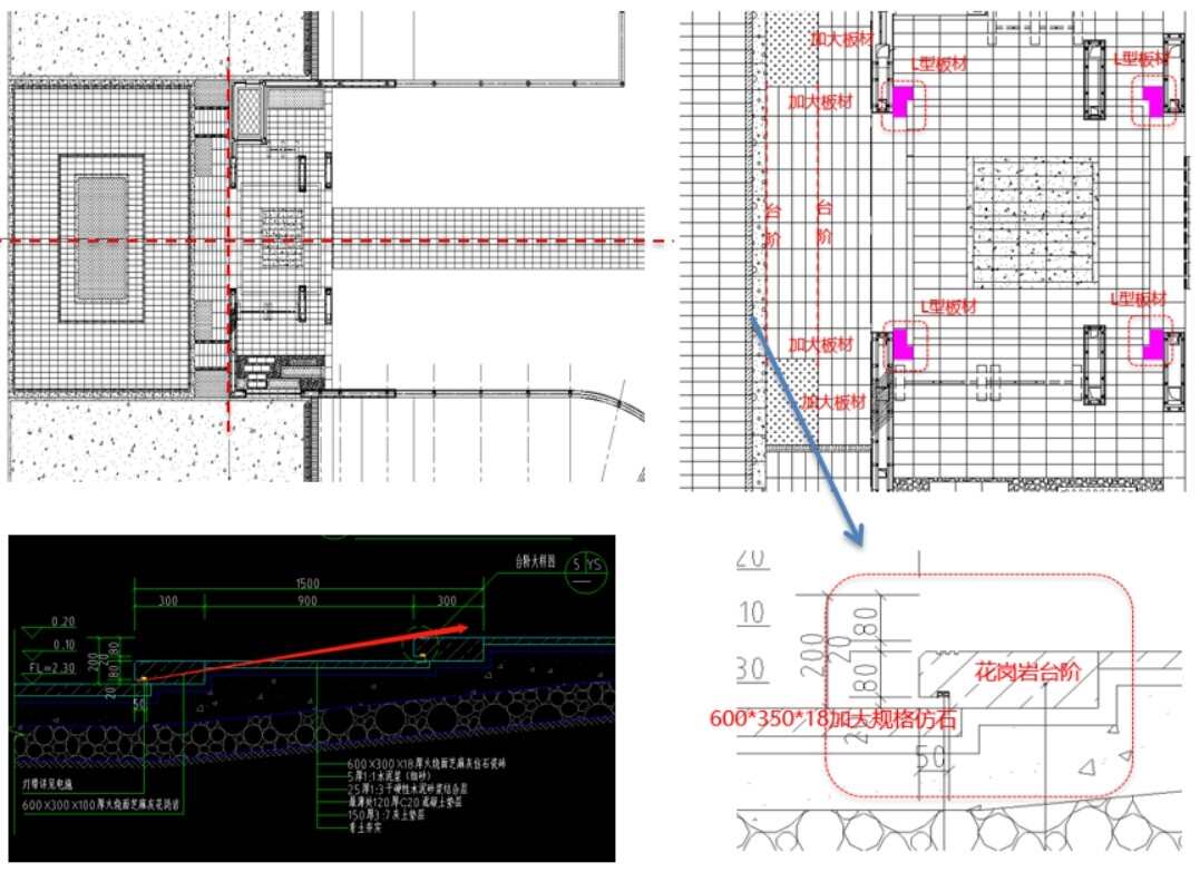 ?結(jié)構(gòu)尺寸與外包尺寸:在圖紙復(fù)核的時(shí)候,需要結(jié)合結(jié)構(gòu)尺寸把外包尺寸明確,這樣可以避免由于外包所需的空間不清晰而導(dǎo)致影響與地面鋪裝銜接不通縫的效果。
