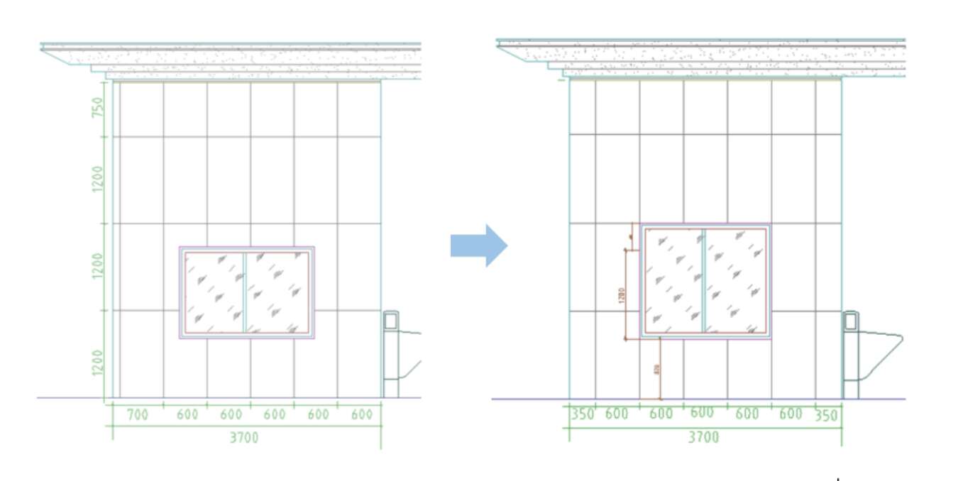 立面燈具的布置會(huì)對(duì)景墻立面的效果帶來(lái)影響,因此需要結(jié)合燈具實(shí)際的尺寸,對(duì)景墻的貼面重新進(jìn)行排版。