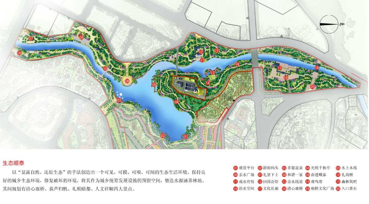 兩條城市景觀軸。沿塔坪公園的文祥湖濱湖景觀軸,沿文祥湖廣場、新城公園形成的東西向綠廊景觀軸。