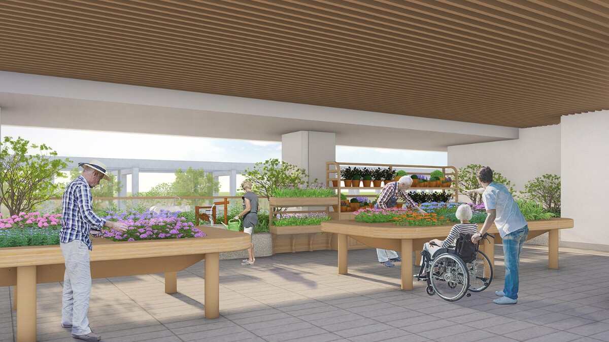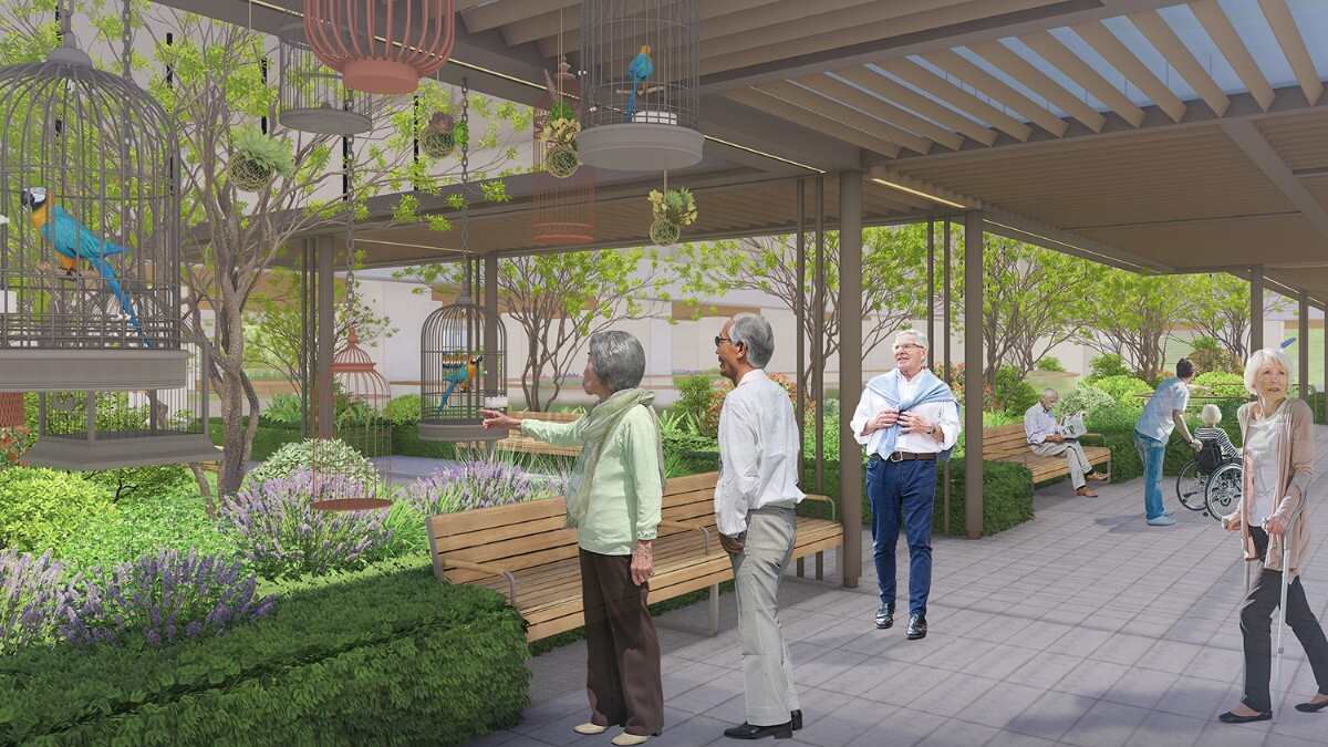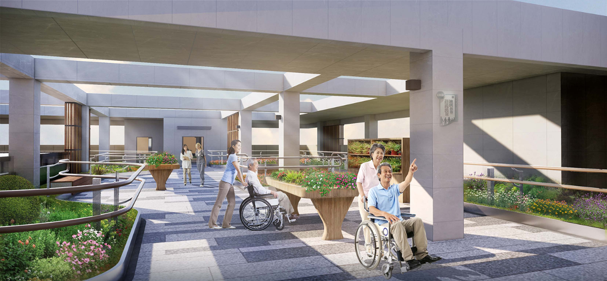本次福利中心三期景觀設(shè)計(jì)包含了首層及多個(gè)架空層和屋頂花園,結(jié)合人群需求和場(chǎng)地條件,設(shè)計(jì)師設(shè)計(jì)出5大景觀亮點(diǎn),專病專養(yǎng)康復(fù)園、全天候生活廊架、園藝藥理治愈園、文化禪意養(yǎng)老、立體多層養(yǎng)老,打造如家般溫暖的花園。每個(gè)人,