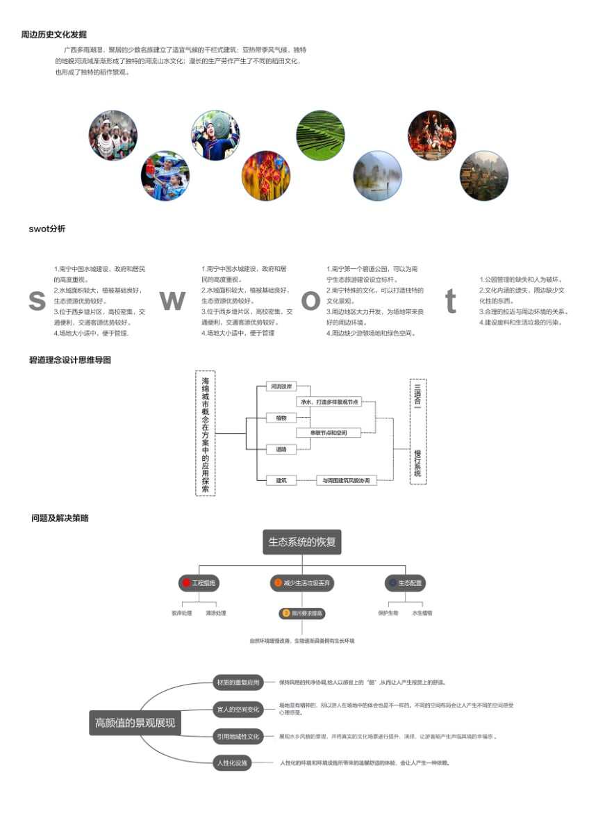 方案結(jié)合新月公園依江而成的彎月狀的地理特點(diǎn),引入海綿城市專項(xiàng)設(shè)計(jì),使其形成一套自循環(huán)的可持續(xù)發(fā)展自然生態(tài)系統(tǒng);重新規(guī)劃布局新月公園的旅游路線,形成環(huán)湖生態(tài)旅游六大片區(qū)組團(tuán),分別是入口廣場(chǎng)景觀區(qū)、濱水景觀體驗(yàn)區(qū)、文化展示體驗(yàn)區(qū)、休閑娛樂體驗(yàn)區(qū)、生態(tài)濕地體驗(yàn)區(qū)、康復(fù)健身活動(dòng)區(qū);項(xiàng)目結(jié)合周邊居住人群,對(duì)公園原有的自然駁岸進(jìn)行重新規(guī)劃設(shè)計(jì),合理種植各類適時(shí)綠植,達(dá)到美化景觀,活化體驗(yàn)的效果。通過本景觀提升項(xiàng)目,將新月公園打造成為南寧高新區(qū)旅游悠閑新地標(biāo),提升高新區(qū)的吸引力,為打造生態(tài)、文明、綠色、優(yōu)美高新區(qū)努力。