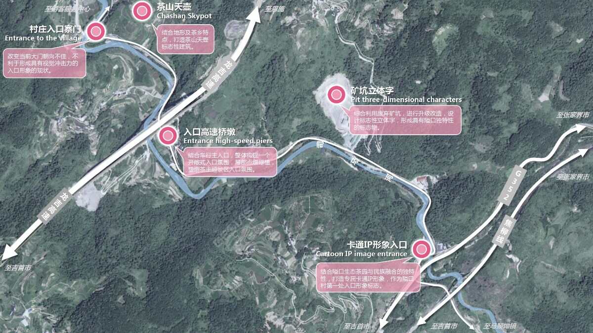 吉首市隘口村是一座萬畝茶園的生態(tài)凈地,已初步形成產(chǎn)業(yè)興旺、鄉(xiāng)風(fēng)淳樸、組織建設(shè),具備打造中國民族地區(qū)傳統(tǒng)村落鄉(xiāng)村振興的標(biāo)桿項目的基礎(chǔ)。一方面,我們思考村落如何形成引流結(jié)構(gòu),提升村莊及其周邊區(qū)域的商業(yè)利用價值,另一方面,結(jié)合村落原有特色,通過風(fēng)貌整治打開隘口村全新視野,營造和美人居,實(shí)現(xiàn)隘口村由普通村落向文旅鄉(xiāng)村振興示范村落的完美轉(zhuǎn)型。相關(guān)作品