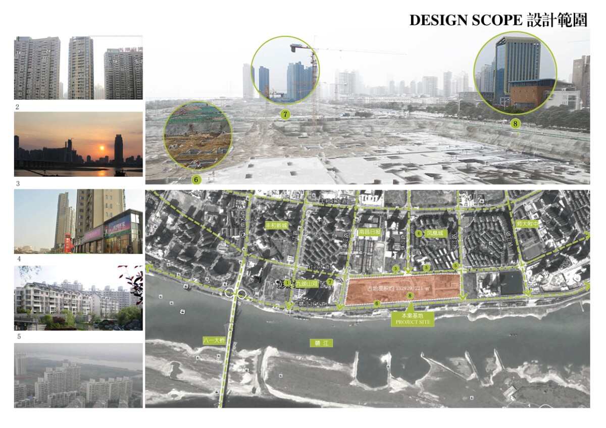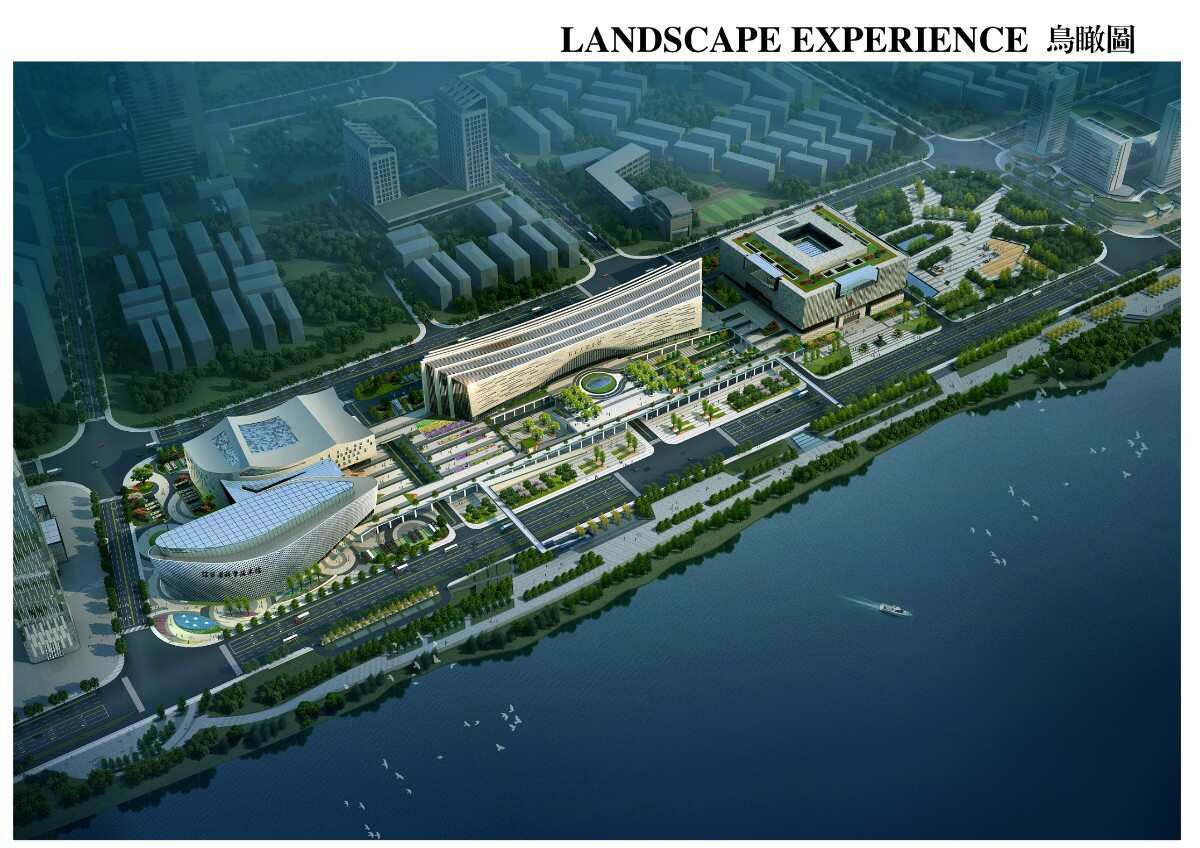江西文化中心包含“博物館,圖書館,科技館”三大功能,規(guī)模總共達(dá)28萬平方米,擬建于贛江西側(cè),八一橋北側(cè),地理位置顯著,城市地標(biāo)意味明顯。地塊整體成長方形,大致南北走向,長度約為900米,寬度約為230米,地勢平坦,沿贛江展開?!芭_閣接連,院廳相向”是省文化中心景觀的設(shè)計理念。即省圖書館、博物館、科技館齊列并立,通過一個6米高的公共平臺互通相連、圍合而居,將城市的歷史、文化、發(fā)展和未來綜合展現(xiàn)在建筑形態(tài)、人文景觀中,就像“城市的客廳”一樣。既可以近觀贛江、遠(yuǎn)眺滕王閣,又可以通過24小時全天候開放的“城市客廳”享受別樣的文化體驗?!拔覀円獙⑹∥幕行拇蛟斐伞鞘械目蛷d’,成為一處所有外來游客必經(jīng)的景點?!笔∥幕行膶⒆鳛橼M江兩岸文化生態(tài)軸線的核心節(jié)點,使贛江西岸的景觀通廊更為豐滿,并與對岸的滕王閣等文化建筑群體隔江呼應(yīng)。省博物館、省圖書館、省科技館由北向南排列開來,分別隱喻歷史、現(xiàn)在與未來,描繪出文化發(fā)展、探索知識的故事與旅程。市民通過省文化中心的開放展廳、藝術(shù)畫廊、文化餐飲、工藝作坊、生活體驗館等,享受到集文化、生活一體的服務(wù)。在整體設(shè)計中,主要景觀節(jié)點布置在入口廣場、中心區(qū)域,強化了景觀軸線的概念,保證了景觀序列的連續(xù)性和節(jié)奏感;次要景觀節(jié)點兼顧均勻性,豐富了景觀層次,各功能區(qū)相互區(qū)別又彼此聯(lián)系。