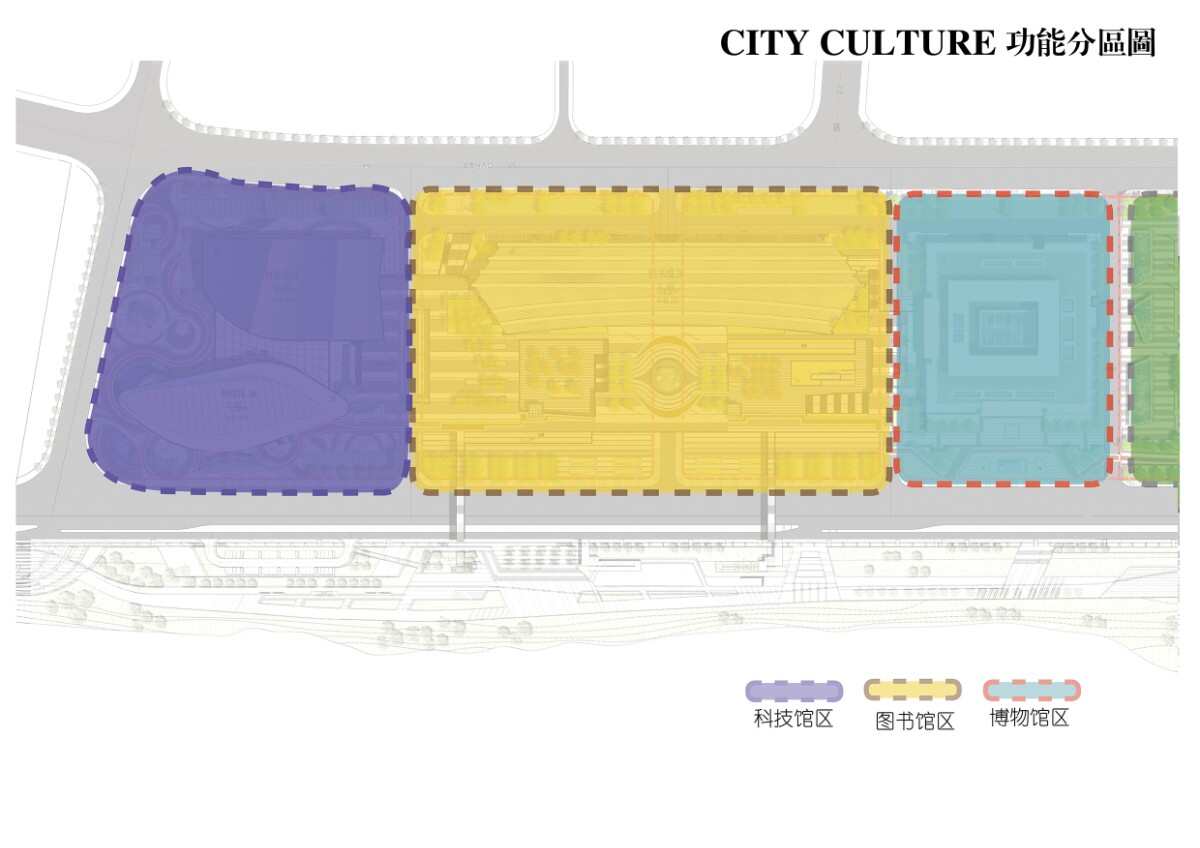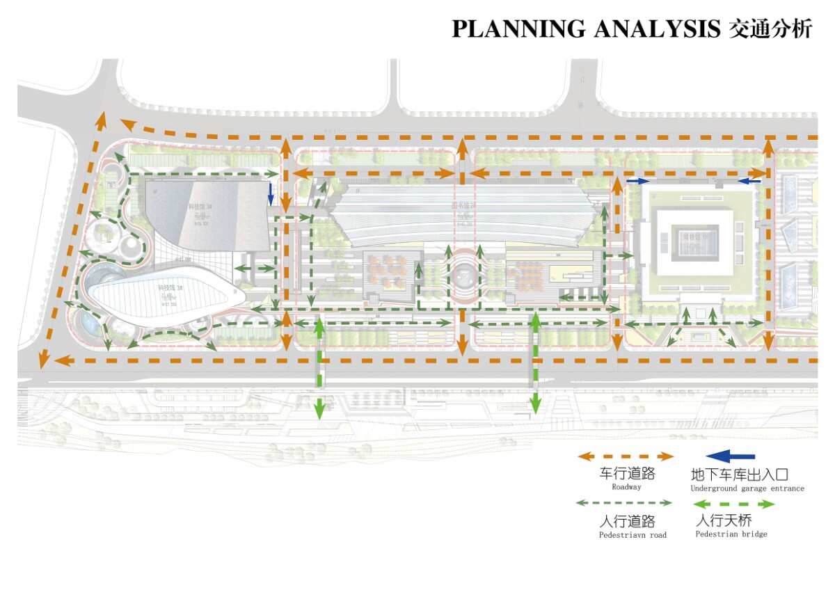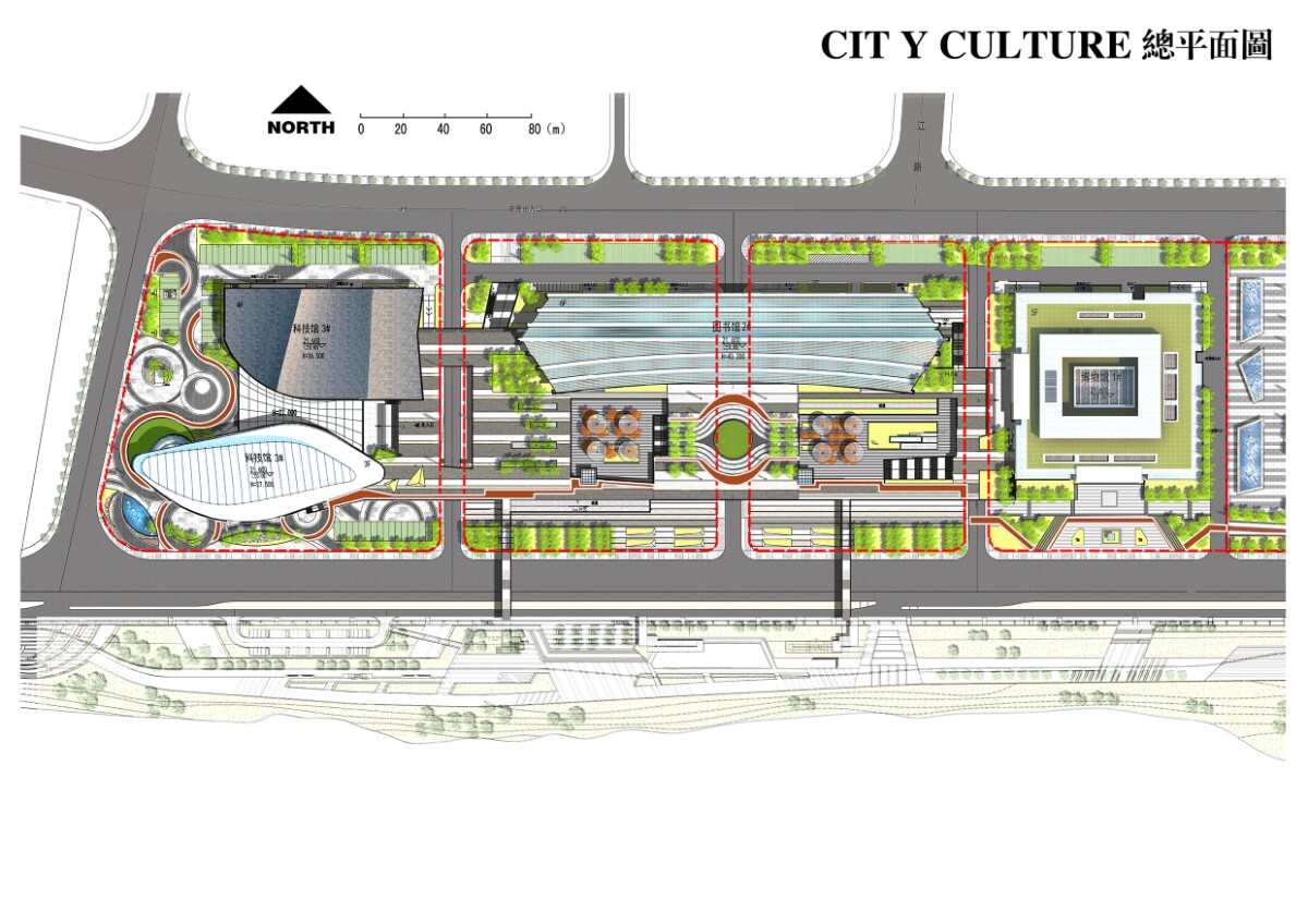 主體建筑一一科技館、圖書館、博物館由南至北呈長方形緩緩展開,分別隱喻歷史、現(xiàn)在與來來,描繪出文化發(fā)展、探索知識的故事與旅程。本設(shè)計將努力使景觀與建筑融為一體,實現(xiàn)風(fēng)格和內(nèi)通上的統(tǒng)一,設(shè)計以體現(xiàn)、繼承和發(fā)揚精文化為家旨,挖掘城市文化底德、建造現(xiàn)代文明花園英雄城市中,別具魅力的標(biāo)志性景觀空間。