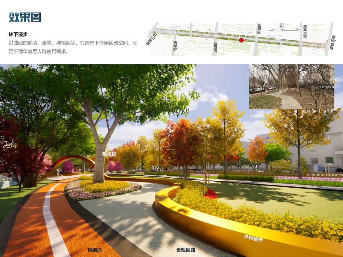 完善城市綠道系統(tǒng),色彩明快、形象簡(jiǎn)潔、大氣包容的城市環(huán)狀綠道系統(tǒng)。華建路與新107國(guó)道綠化帶、昌盛街綠化帶等交通綠化帶及鐵路防護(hù)帶共同組成環(huán)形綠道系統(tǒng)。在保持綠地空間原有生態(tài)、原有格局的基礎(chǔ)上,利用慢行系統(tǒng)的建設(shè)和串聯(lián),營(yíng)造出有活力的綠地景觀氛圍,是周邊居民最舒適的休閑運(yùn)動(dòng)空間。
