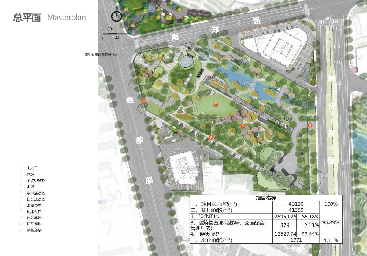 設(shè)計(jì)分為四大區(qū)域,分別是高線、綠漣、水鏡、活動(dòng)區(qū)。