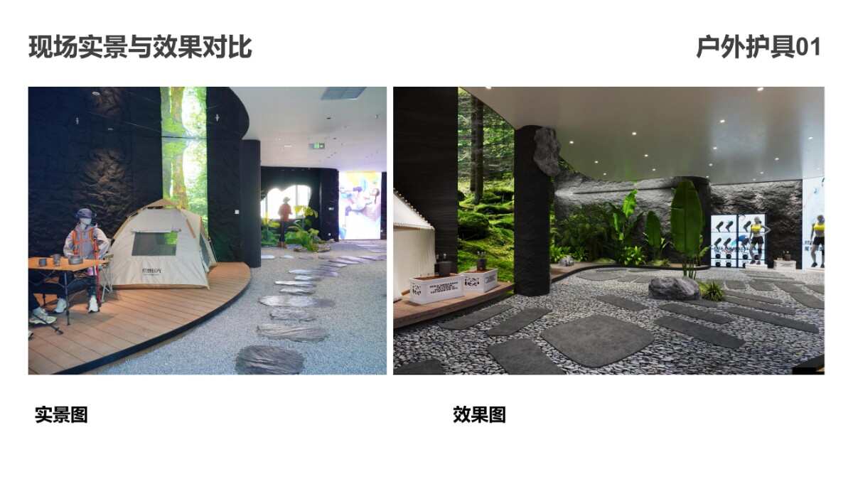 戶外展廳空間的設(shè)計(jì)上,結(jié)合真實(shí)戶外,打造出自然環(huán)境感,給客戶身臨其境的體驗(yàn)感受。