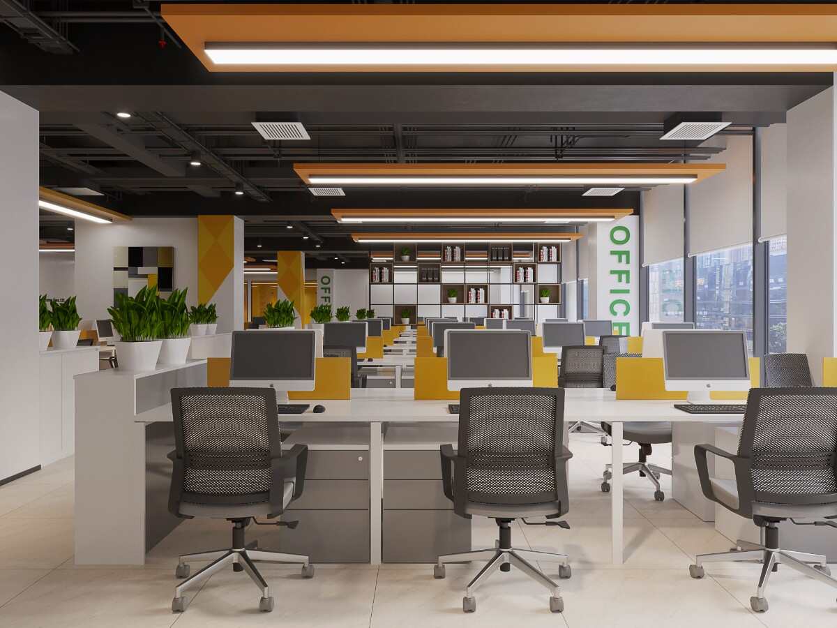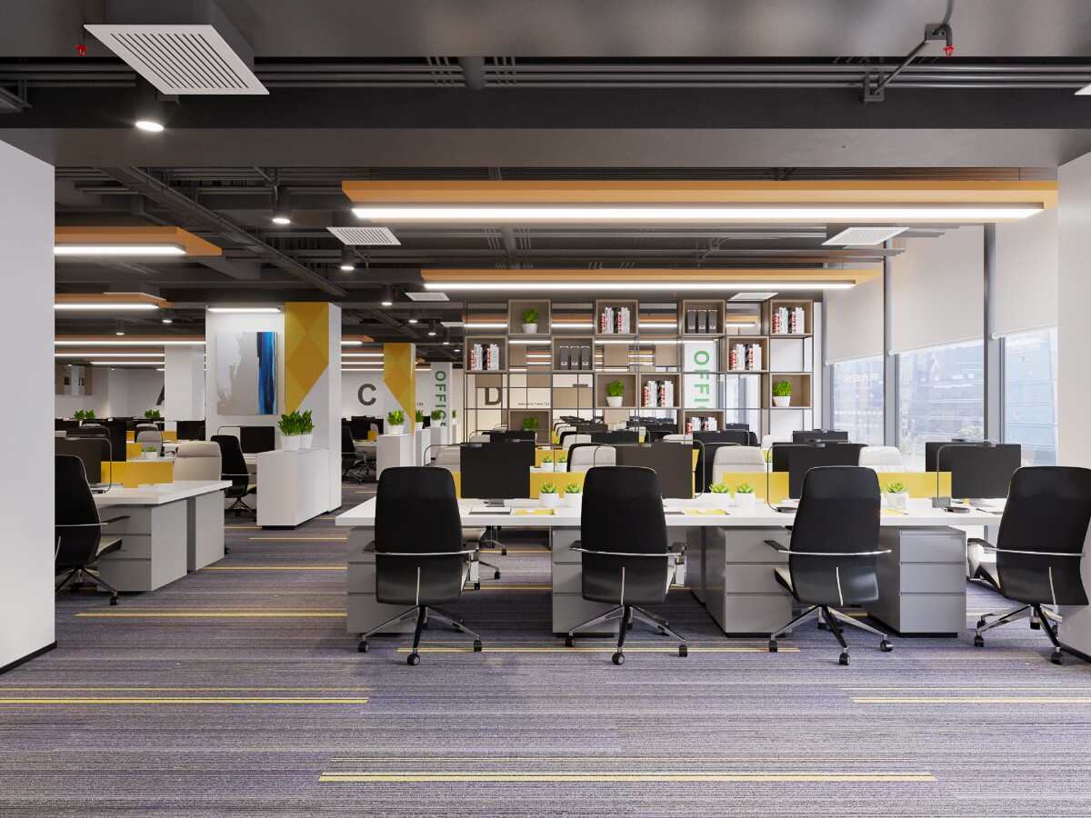 301㎡需容納 90 個辦公位,高效利用空間是關鍵。采用模塊化辦公家具,根據人體工程學設計,合理規(guī)劃每個辦公位尺