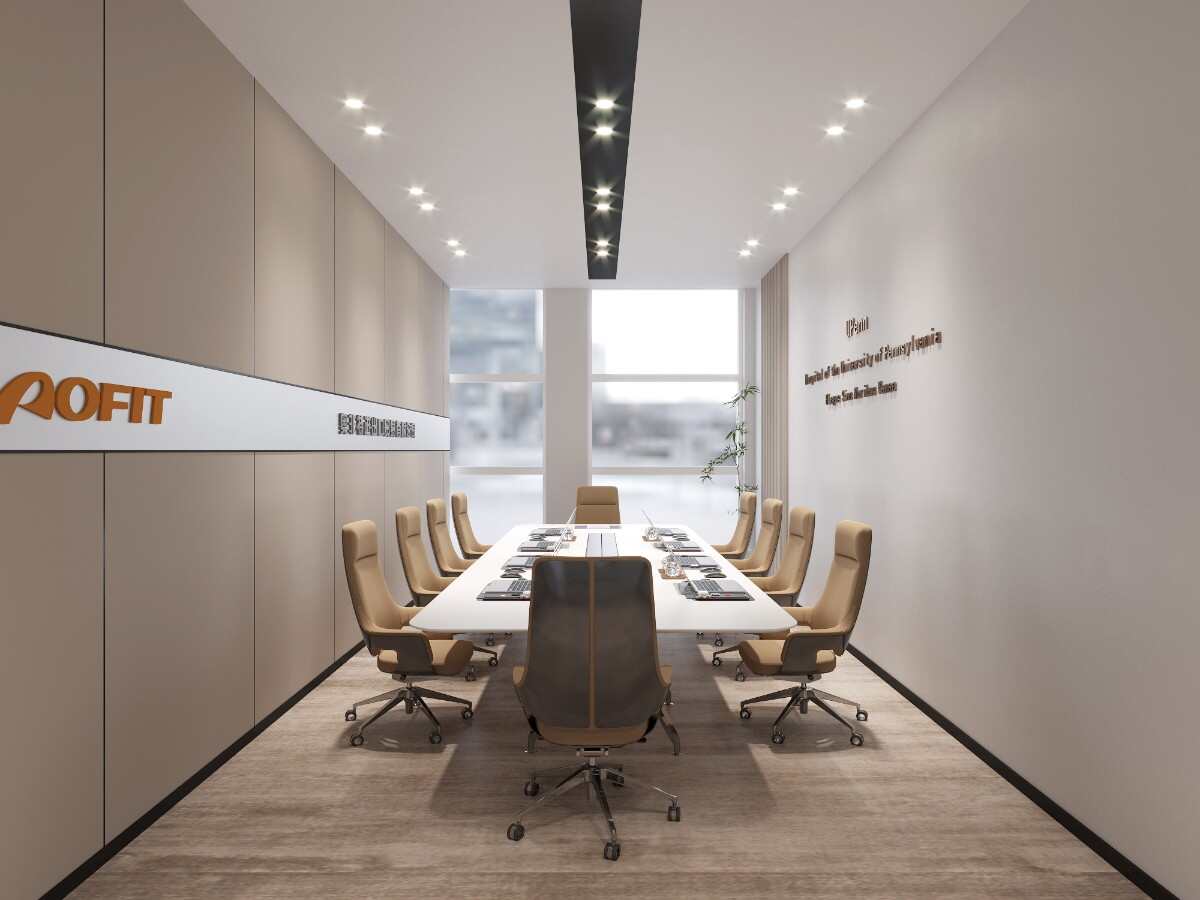 會議室空間相對緊湊,布局注重高效利用與舒適體驗。采用橢圓形會議桌,可促進參會人員面對面交流,增強互動性。