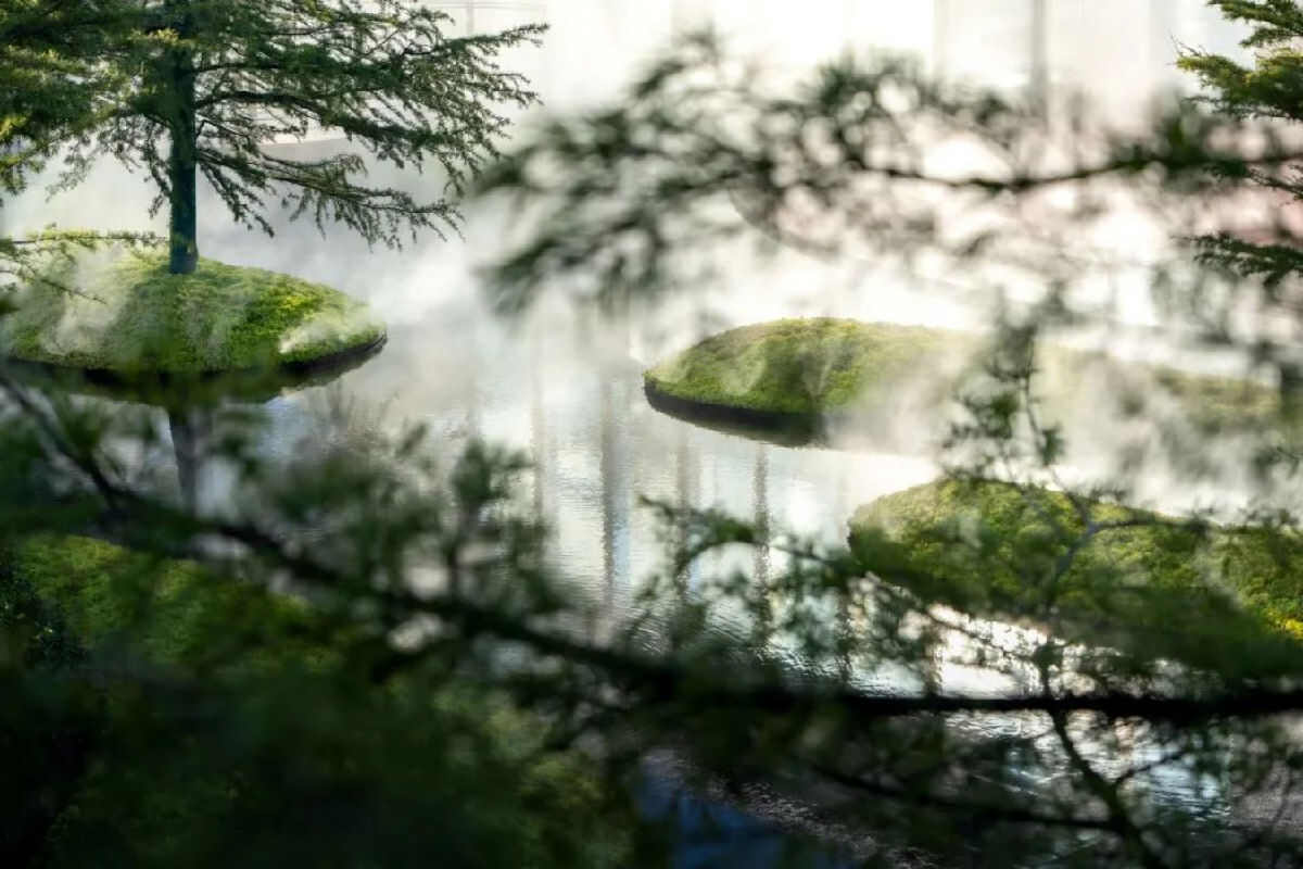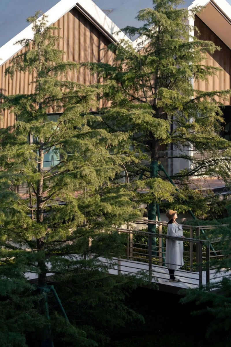 幽謐的水灘綠島帶來更純凈自然的空間感受,浮橋穿梭林間,呈現(xiàn)夢境般的美好空間感受。當人們漫游其中,沉浸在藝術化自然景象中,感受自然的力量,體會自由的心境,短暫的拋掉內心的焦慮,在歸家過程中享受片刻的精神休憩。