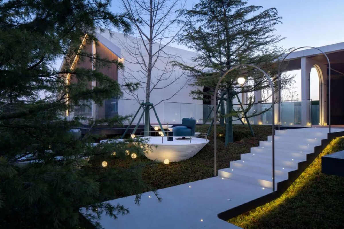 入口大門由橫向的延展界面遞進,用結構面打造包圍感,兼顧空間的開放與互動,既形成了對外的形象界面,也通過墻體的變化過渡了內外空間。結合VIP接待室,營造前廳后院大場景。林蔭影綽花朵擁簇,精致明亮的入口矗立于此,自然與人工巧妙結合,北歐都市的獨特氣質得以淋漓展現(xiàn)。