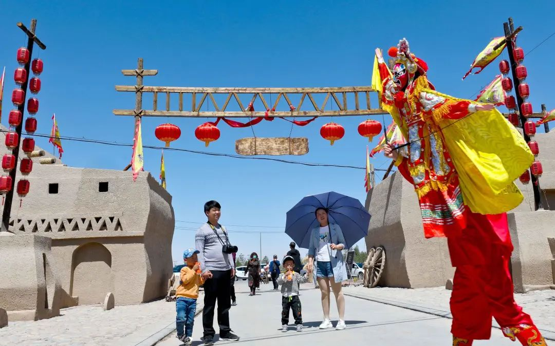 入口形象大門采用夯土、木頭材質(zhì)進行設(shè)計,充分考慮河西建筑風(fēng)格和絲路文化、軍屯文化、農(nóng)耕文化;展示西域的蒼野與地域風(fēng)情。形象大門至民居建筑中間,延續(xù)大門設(shè)計風(fēng)格,設(shè)計連貫景觀線,夯土城墻、紅燈籠、河西特色物件展示,充分彰顯西域風(fēng)格和迎賓儀式感