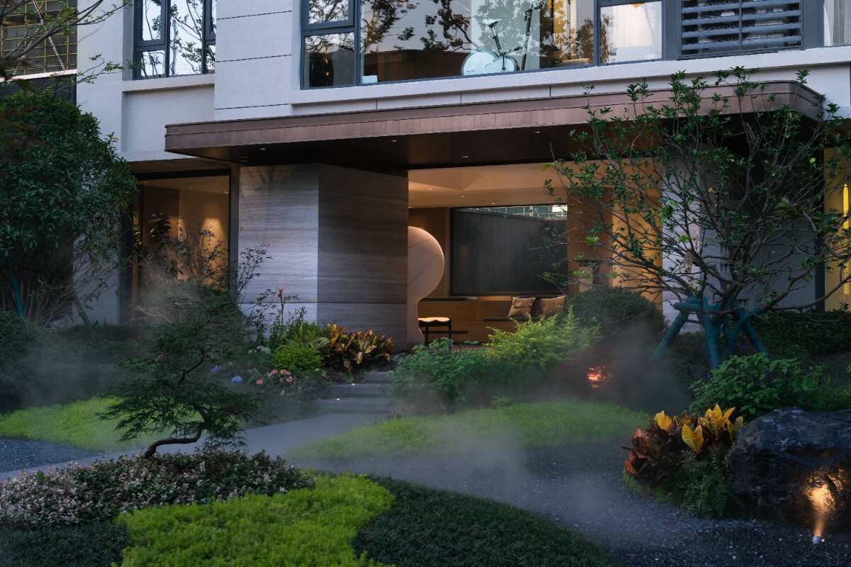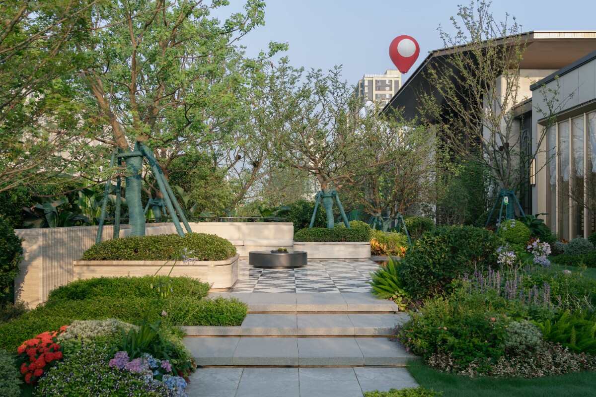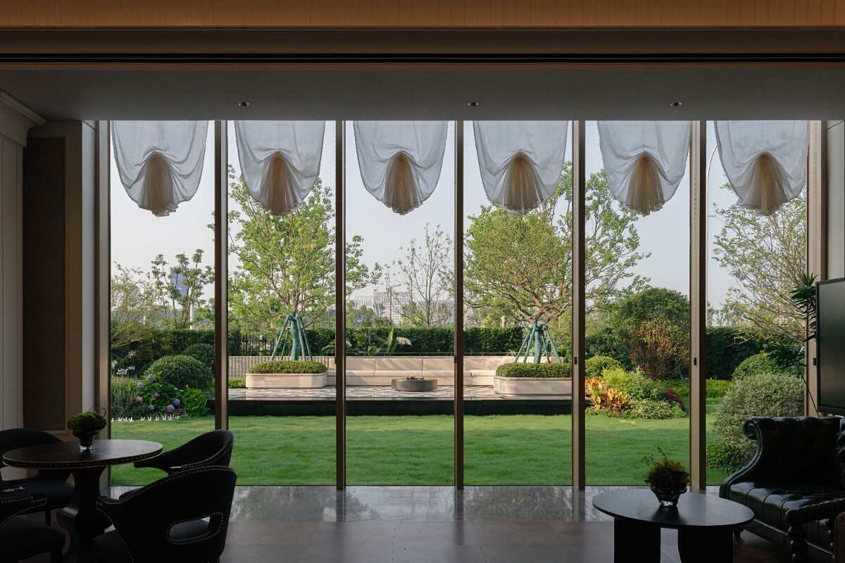 窗景構(gòu)成一個(gè)較為私密的酒店式花園。給人一種典雅輕松的景觀映像。整體景觀節(jié)奏做了一些起承轉(zhuǎn)合的空間,包括視覺焦點(diǎn)是一個(gè)舒適的輕享酒店式下午茶空間