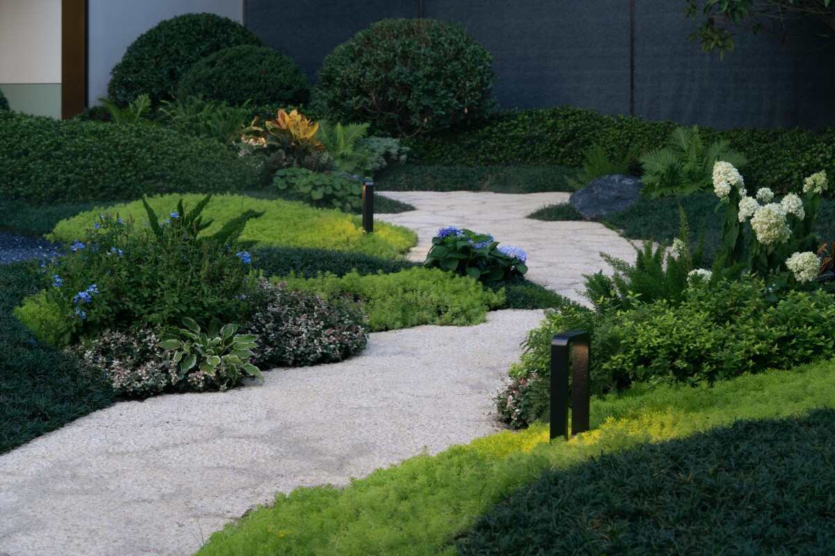 前場(chǎng)入口通過植物對(duì)景,一些的小裝飾符號(hào),以及精致的花鏡種植營造一種浪漫的氛圍感,讓人在出來的那一刻心也跟著靜下來。從而去漫步感受這蜿蜒而精致花鏡