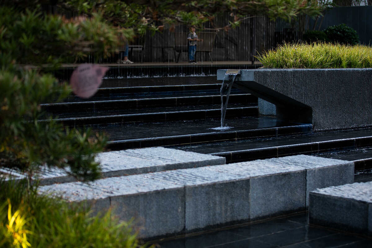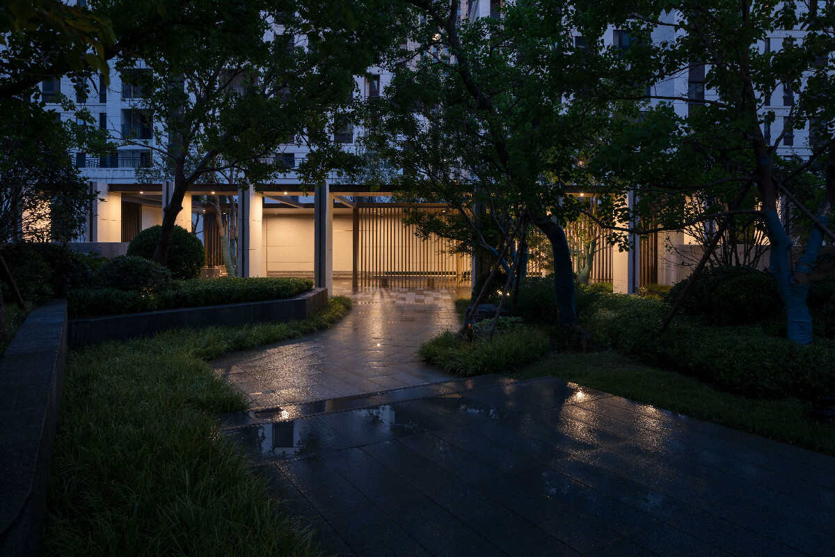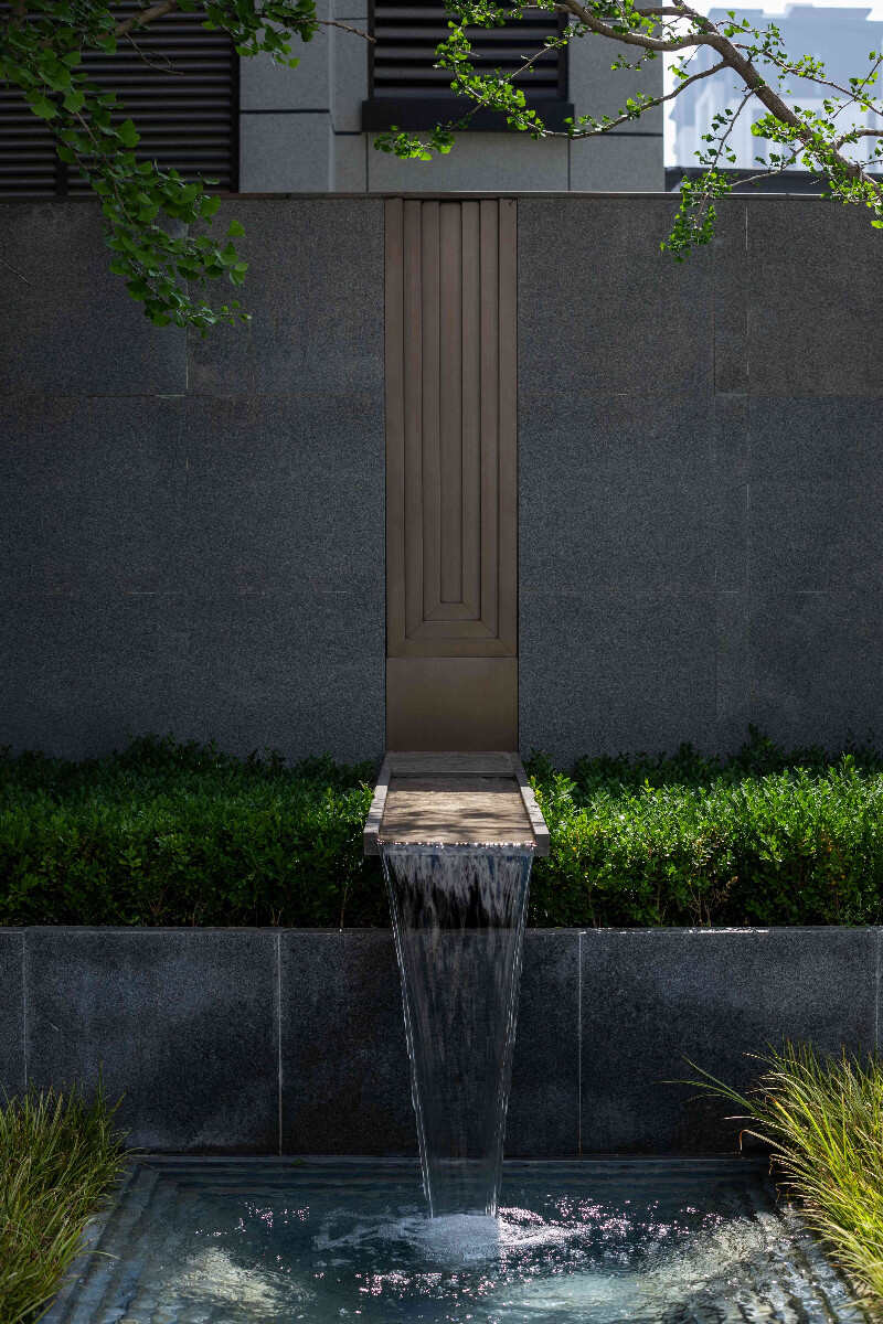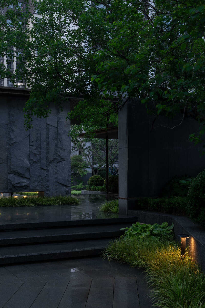 項目從立意到項目落地?zé)o不在呼應(yīng)對世外桃源的追求,我們用現(xiàn)代的材料和解構(gòu)性的設(shè)計語言將自然模擬,其中對入口主軸線的高差處理,結(jié)合廊架流瀑及臺地水景,使游人的體驗感提升了一個高度,細(xì)膩的植物表現(xiàn)及人性化的林下空間都使景觀達(dá)到視覺效果和功能上的統(tǒng)一。寧靜而具有品質(zhì)的夜景燈光又加強的該項目的品質(zhì)氛圍感。