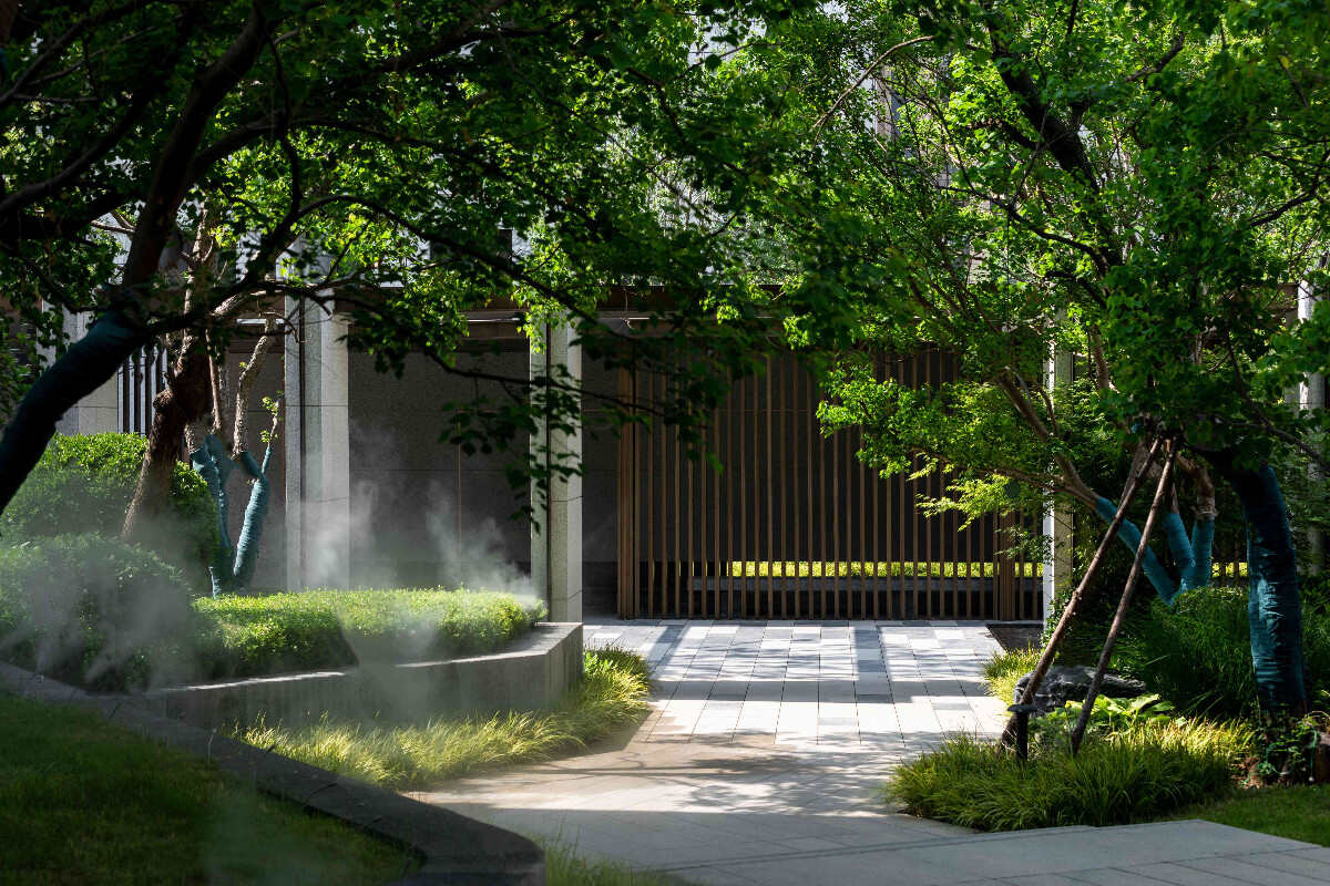 我們通過在空間上經(jīng)過反復(fù)的推敲,通過融入山水元素,以及當(dāng)?shù)鬲毺氐奈幕?,項目由北向南為禮序歸家入軸、由西向東為雅靜自然軸、東西兩處全齡兒童活動場地、五處宅間花園。幾大景觀節(jié)點組成了構(gòu)成了項目的主要景觀框架,通過簡潔明快的景觀結(jié)構(gòu),立意打造獨立、靜謐、整潔的景觀界面。把控景觀動線上情緒體驗節(jié)奏、空間開合啟承來展現(xiàn)萬物變化的不同景致。從主入口闊景界面的流水回廊到曲徑通幽的喬木夾道,再到流光疏影的宅間林下場地,每一處場景均是自然的表達(dá),追求對心中桃源的美好向往。