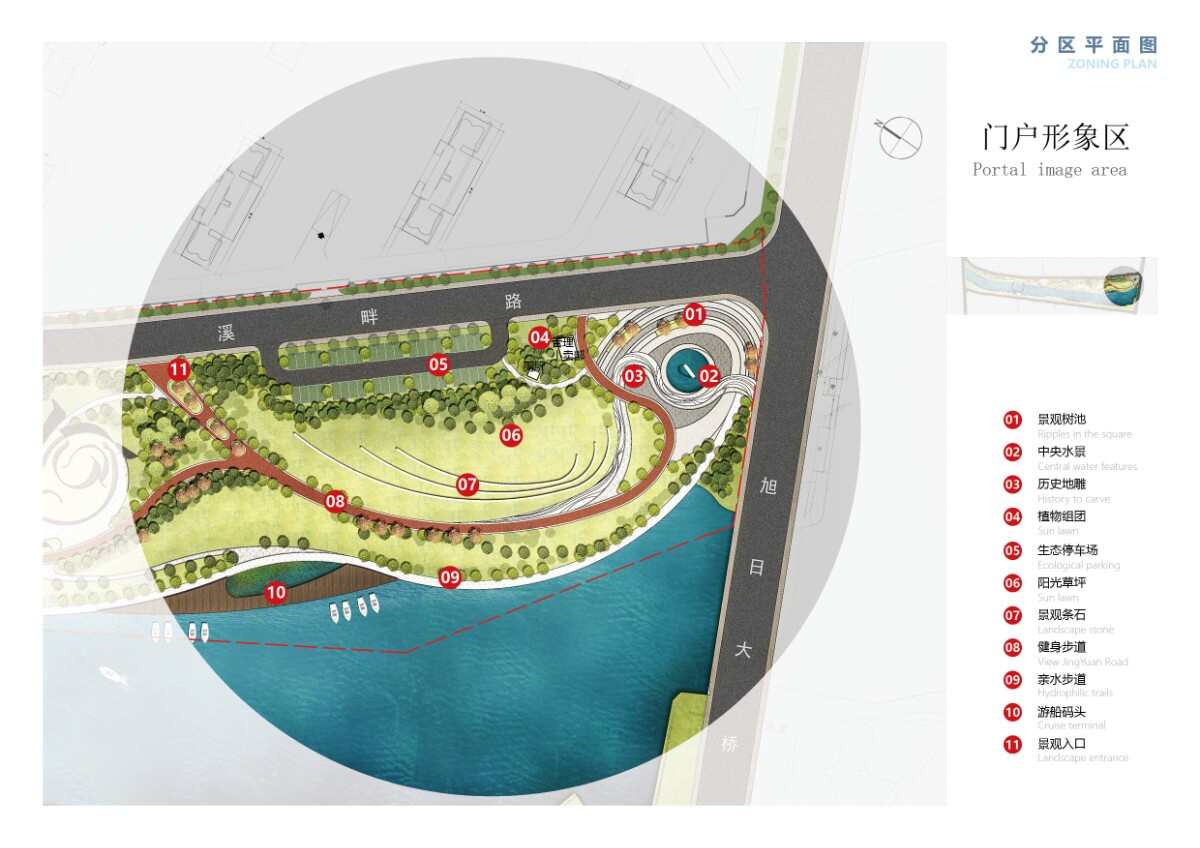 文化底蘊(yùn)展覽----以櫧溪河為軸,構(gòu)建饒城文化記憶,充分展示出源遠(yuǎn)流長的文化底蘊(yùn)。 市民娛樂康體----公共城市綠地,是市民戶外娛樂活動(dòng)休閑必要場(chǎng)所,因此創(chuàng)造豐富多變的游覽體驗(yàn)空間。 濱河游憩休閑----作為重要的景觀帶,開闊的濱河視覺通廊,舒適的濱河風(fēng)光帶的打造,為城市增加了更多游憩休閑空間。 文化精神引領(lǐng)----深入了解本地歷史文化,結(jié)合現(xiàn)代審美思想,營造多元化的景觀空間,打造文化體驗(yàn)新方式。 以帶動(dòng)城市價(jià)值、拉近人與自然、弘揚(yáng)地域文化、展示城市活力為目標(biāo),采用現(xiàn)代簡(jiǎn)約、師法自然——和弦高音水云輕,天人合一嵩月吟的設(shè)計(jì)手法,打造綠色城市的新紐帶,演繹城市新人文。本案位于江西省項(xiàng)目位于江西省上饒市,上饒位于江西省東北部,贛浙閩皖四省交界處,因鄱陽湖,被稱為“魚米之鄉(xiāng)”;因三清山,素有“山郁珍奇”之譽(yù);因扼贛、浙、閩、皖四省要沖,成為“豫章第一門戶”、“江西東大門”,歷來享有“富饒之洲”、“信美之郡”的美譽(yù)。項(xiàng)目此次用地面積85520.00平方米,項(xiàng)目位置位于櫧溪路以東,鳳凰西大道以南位置。旁邊有櫧溪濕地公園、上饒縣人民醫(yī)院等,約1500米左右有上饒縣中學(xué)及上饒縣汽車站,緊鄰鳳凰西大道和惟義路以及櫧溪北路,交通較為便利,離上饒市政府僅約2500米的距離。基地現(xiàn)狀目前主要由荒地等組成,其中包含少數(shù)水塘。根據(jù)規(guī)劃基地未來以公園綠地為主。