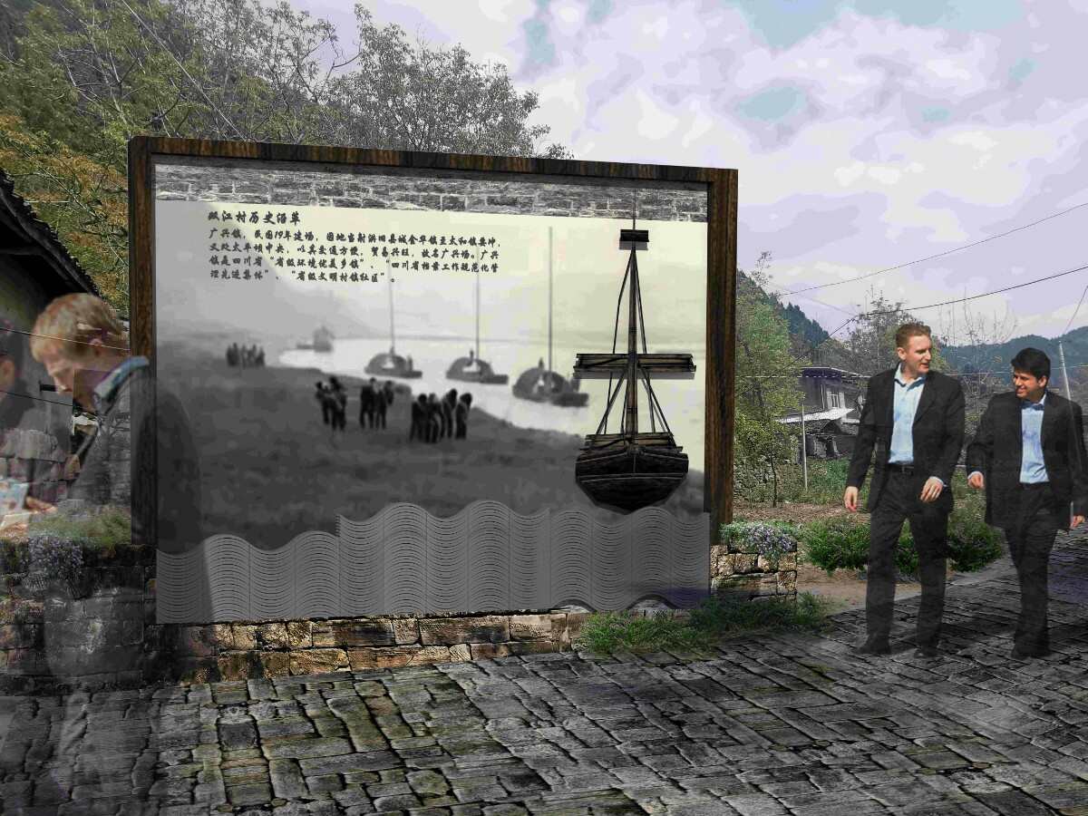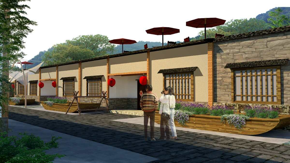 項目規(guī)劃保留提取的鄉(xiāng)土元素,如舊船、石塊擋墻、舊青瓦等,并運用至院門改造、標識標牌、路燈設(shè)計、景觀小品等設(shè)計中;充分挖掘規(guī)劃區(qū)的文化內(nèi)涵,結(jié)合傳統(tǒng)民居改造,植入庭院經(jīng)濟等新型業(yè)態(tài),打造特色主題院落和節(jié)點空間;獨特的木結(jié)構(gòu)曲面屋頂,結(jié)合建筑改建,營造了極具藝術(shù)性和本土氣息的內(nèi)部空間體驗和室外活動空間。