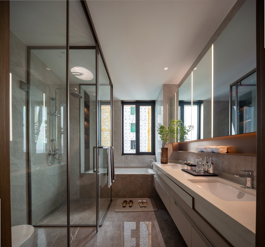 冥想室,一個(gè)空靈沉靜的空間,以體表的感覺與空間建立感情。視野與社區(qū)湖景相結(jié)合,通過(guò)身心靈探索世界,為居住者創(chuàng)造出舒適、放松、愉悅的體驗(yàn)。