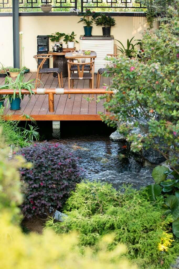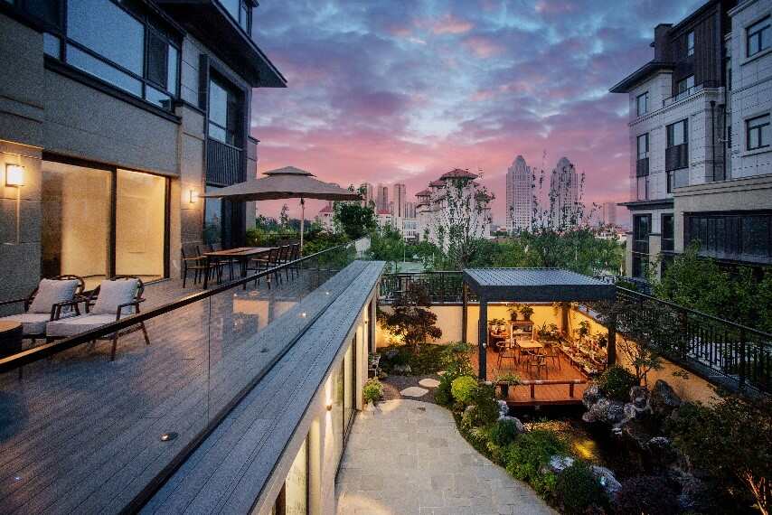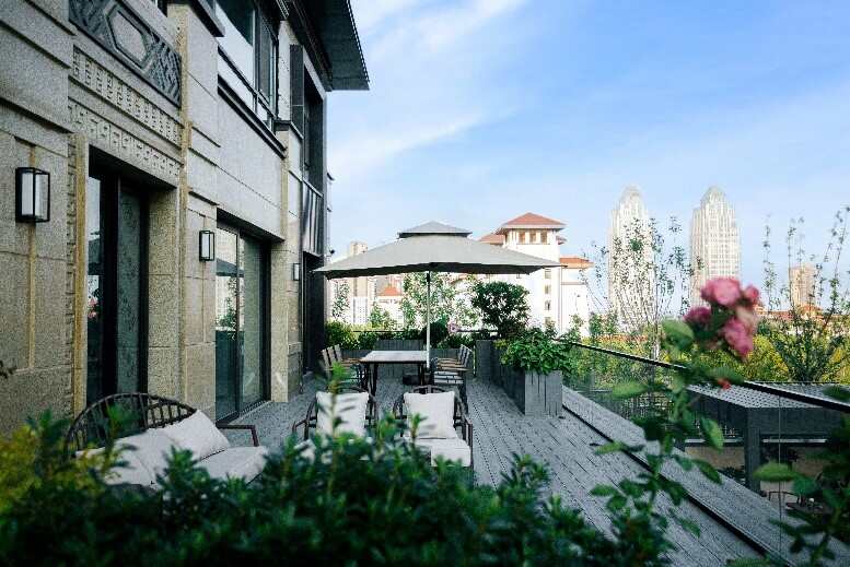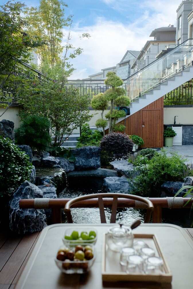 一層露臺的設(shè)計考慮到了與自然環(huán)境的無縫連接。露臺空間雖然有限,但設(shè)計師巧妙地利用了空間布局和植物配置,創(chuàng)造出一個既適合休閑娛樂,又能滿足安靜冥想的場所。