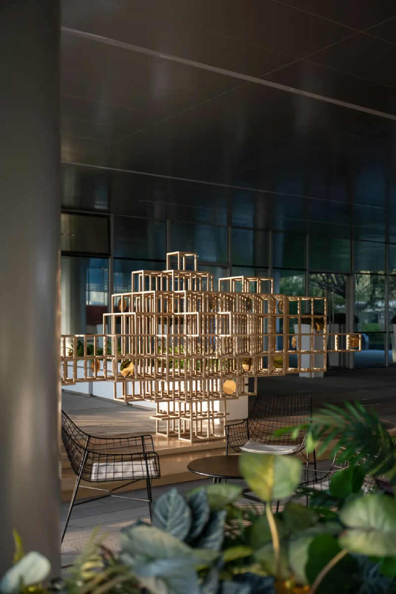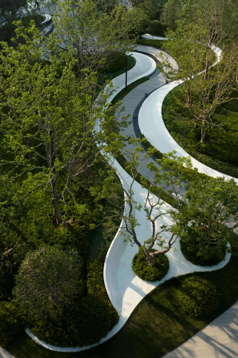 奧雅股份一直強(qiáng)調(diào)空間滲透的重要性,未來感云朵廊架與搖曳的樹影緊密融合,打破生活與自然的界限,一時(shí)分不清樹在云上,還是云在林間。