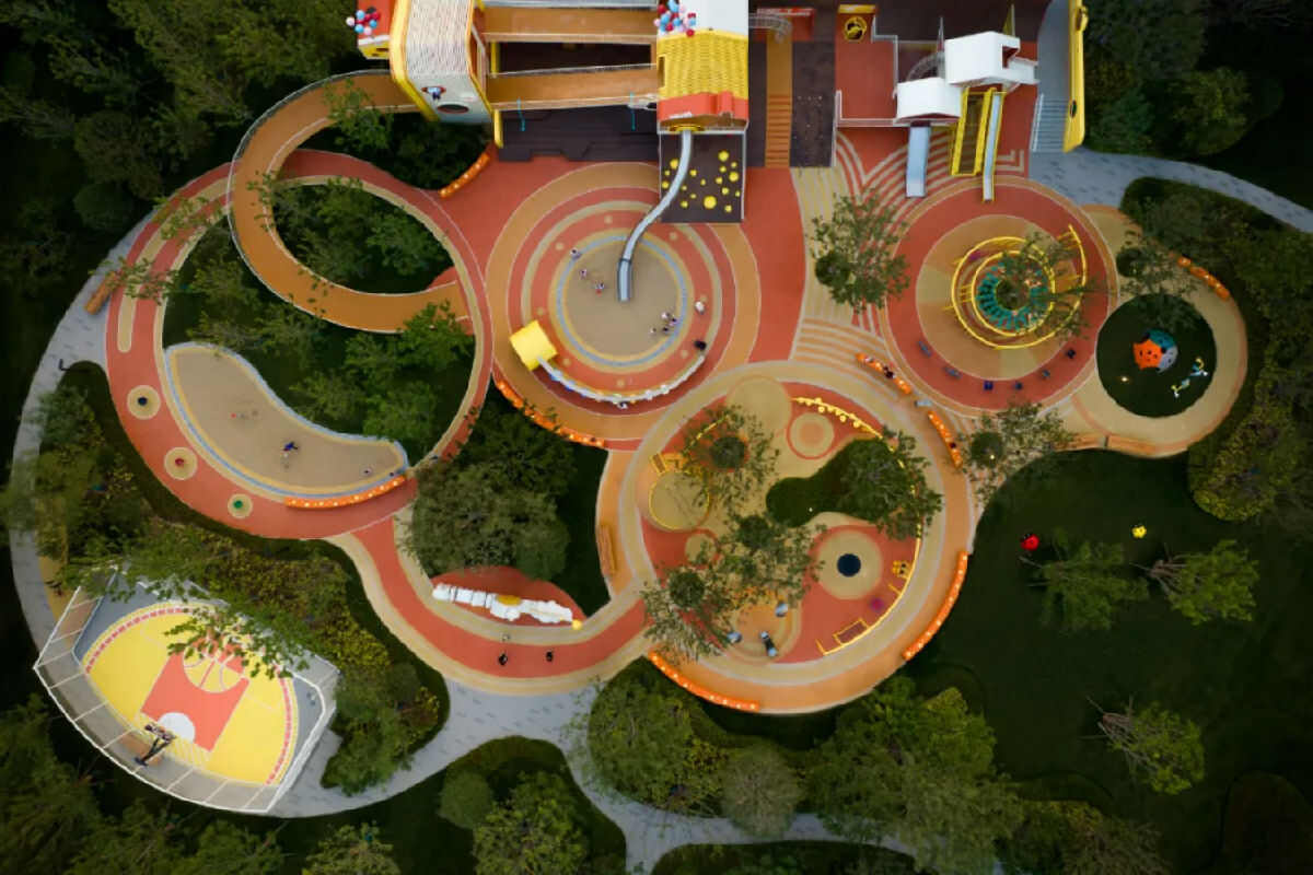 項(xiàng)目團(tuán)隊(duì)借助場地5米高差,創(chuàng)造了一座特殊的立體親子樂園,將場地最大挑戰(zhàn)轉(zhuǎn)化為項(xiàng)目最佳亮點(diǎn)。