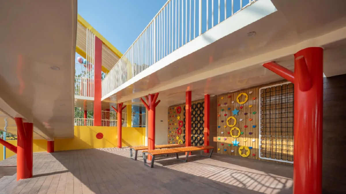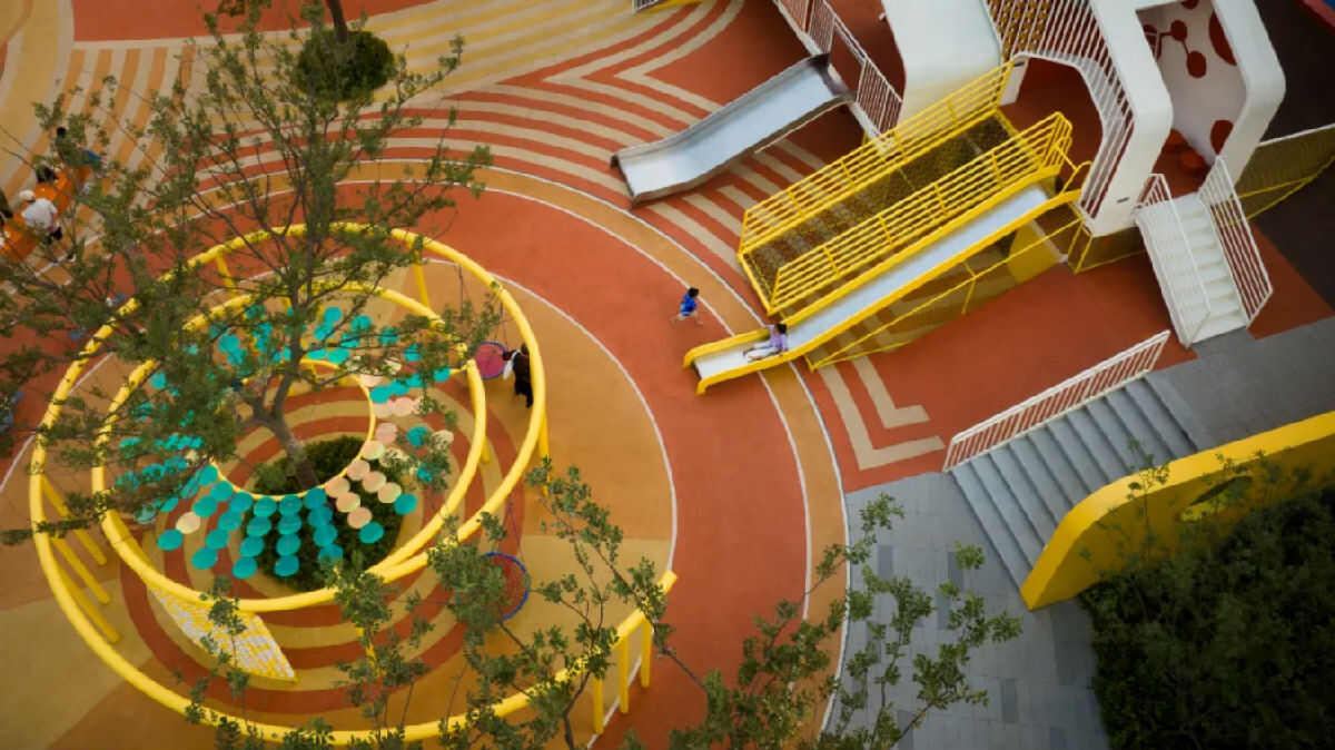 在空間尺度上精準(zhǔn)把控,遮蔽風(fēng)井的同時(shí)也能正常排風(fēng),將通往大區(qū)的階梯與無障礙通道隱匿在多維度的玩耍天地之中。