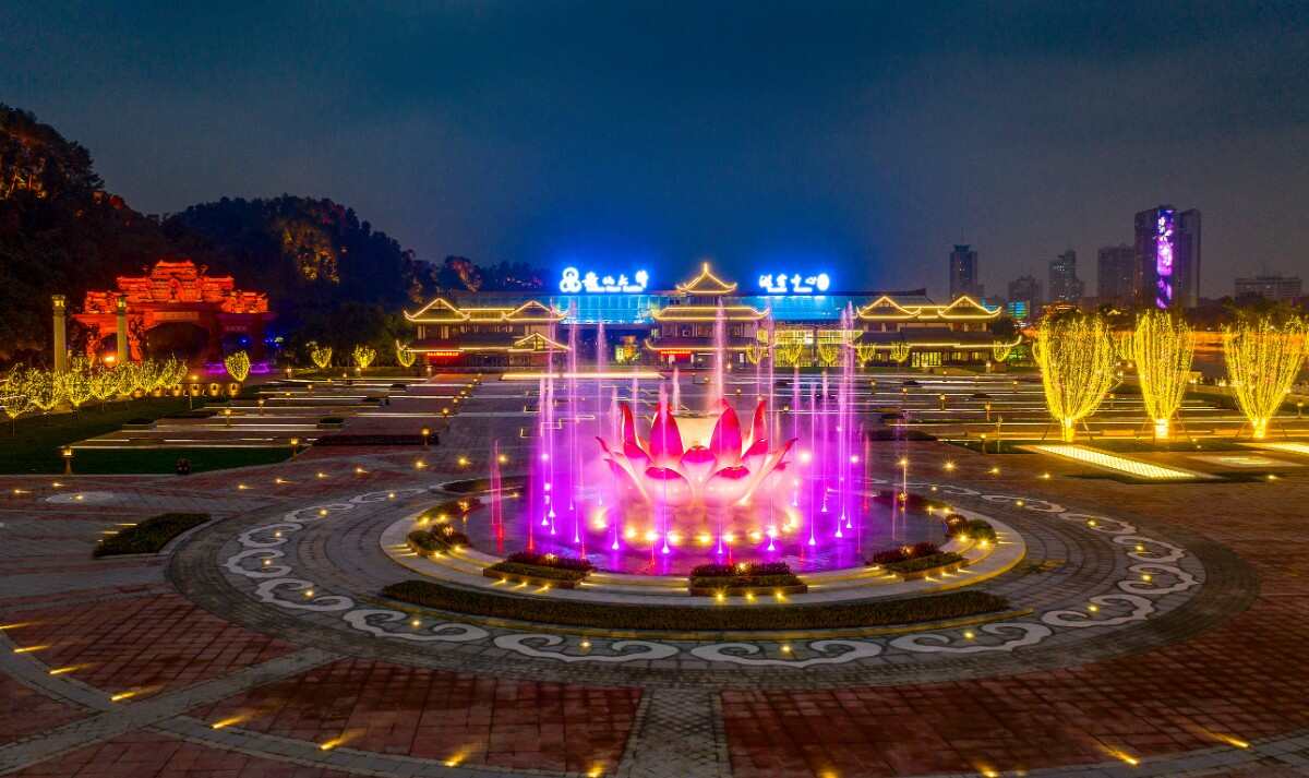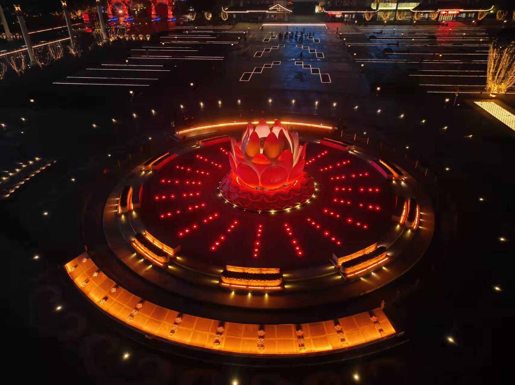 大佛文化廣場中心蓮花噴泉夜景實景圖