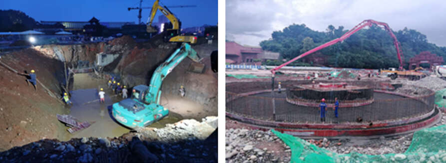 實施過程中恰逢百年一遇的八一八特大洪水倒灌工地現(xiàn)場,給施工進度造成嚴重影響;