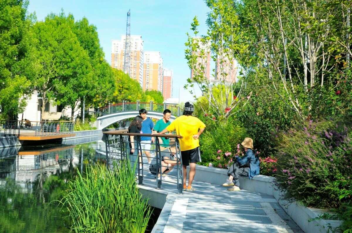 在通惠灌渠休閑、娛樂(lè)的市民