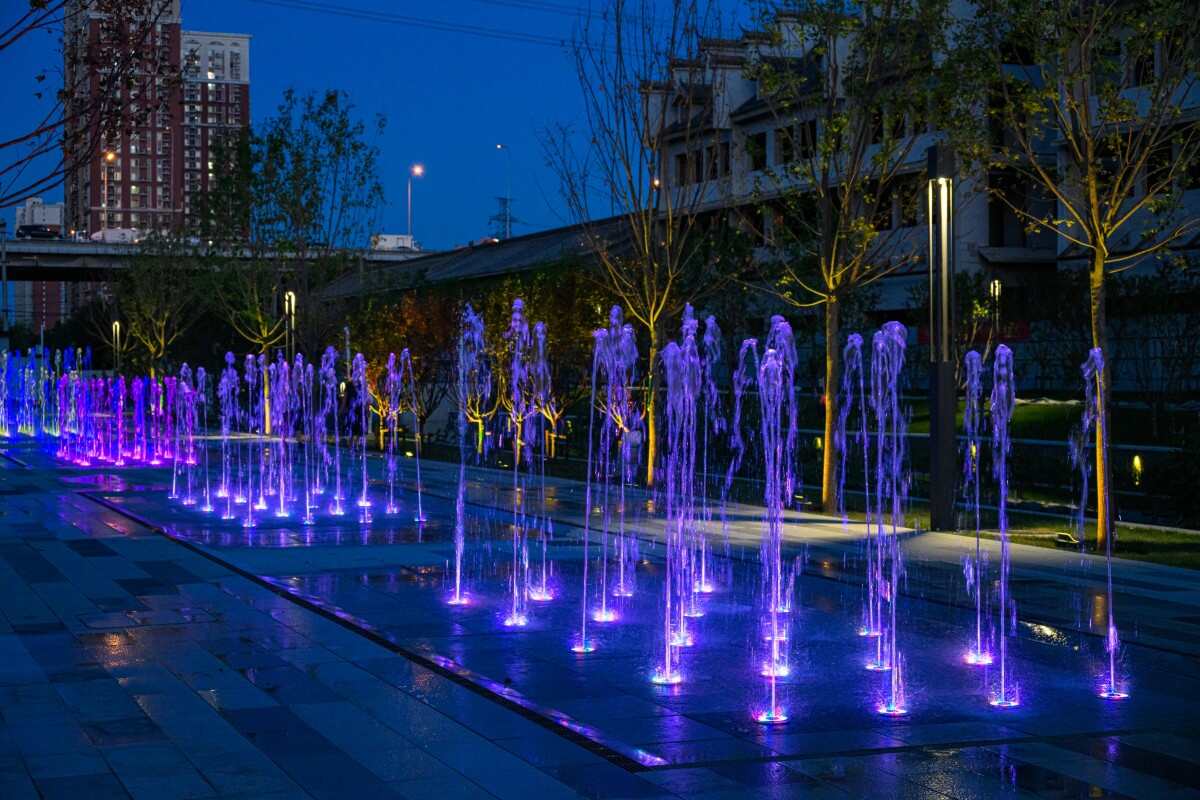 水岸秀場(chǎng):利用旱噴形成人氣聚場(chǎng),增強(qiáng)空間互動(dòng)性,營(yíng)造歡樂(lè)迎賓氛圍