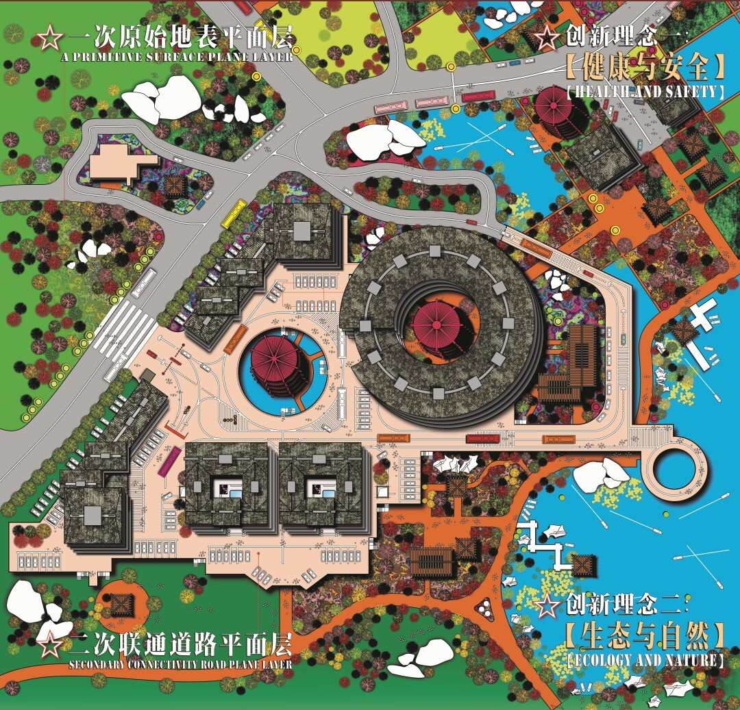 一次地表層(人文生態(tài)層):完全留給行人與自然,僅允許應(yīng)急特種車輛通行,打造連續(xù)、安全、綠色的生態(tài)景觀和社區(qū)公共空間;