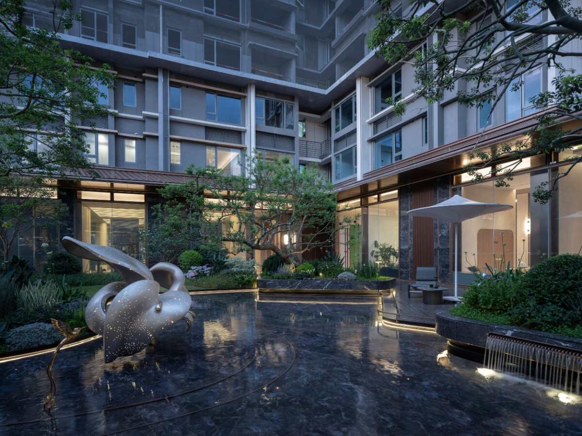 依托大尺度樓間距,打造舒展大氣的核心水景空間,傳遞輕奢度假氛圍。暮色中華燈初啟,映照池底藍(lán)翡翠巖板,熠熠生輝。高品質(zhì)軟裝與自然雅景相得益彰,呈現(xiàn)精致、閑適而又高級(jí)的空間格調(diào)。