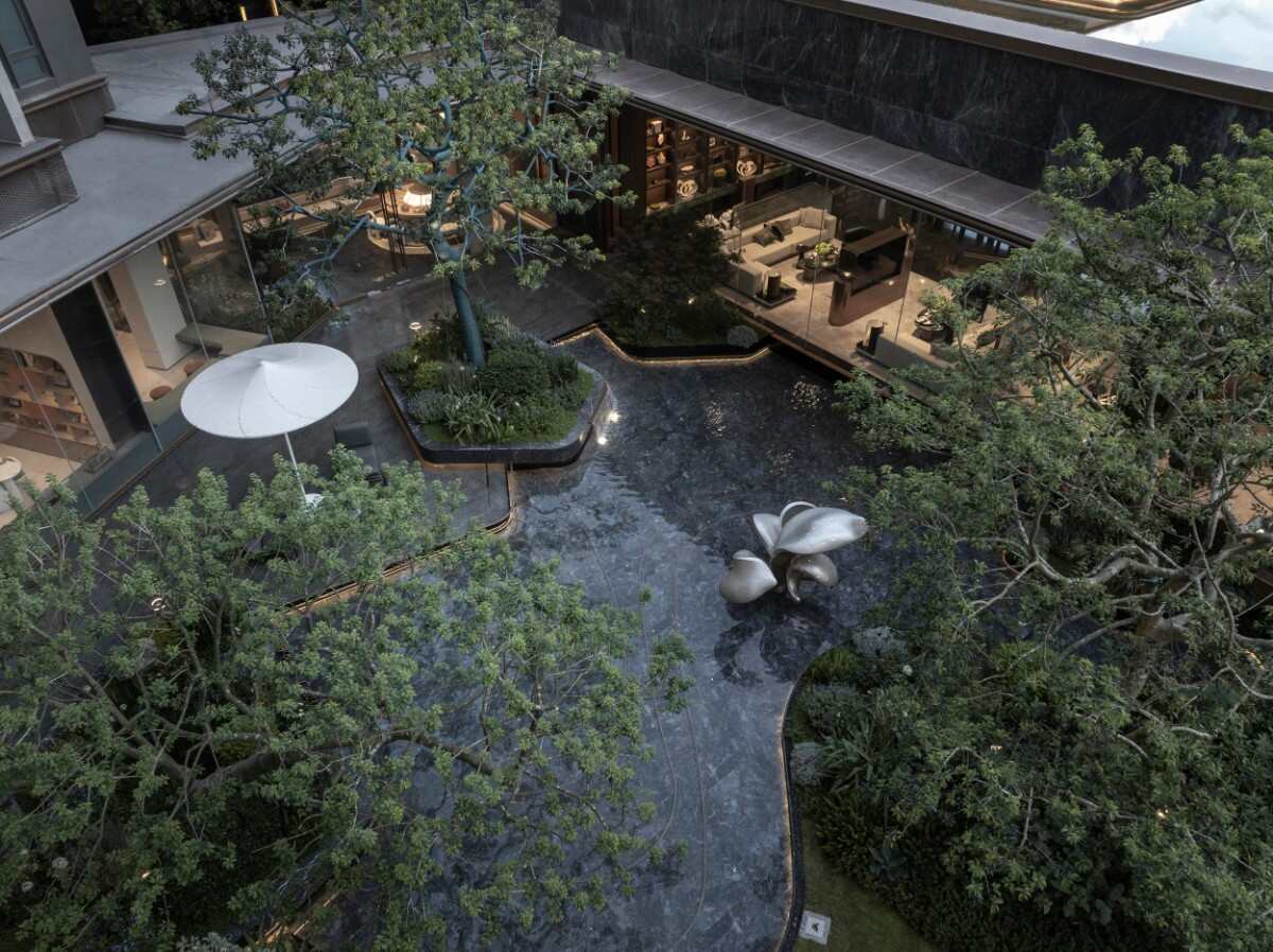 以“形意交融、空間共融”為策略,通過(guò)雙重中庭格局、多維花園體系與泛會(huì)所場(chǎng)景,構(gòu)建自然美學(xué)與現(xiàn)代精奢兼具的沉浸式生活場(chǎng)域。