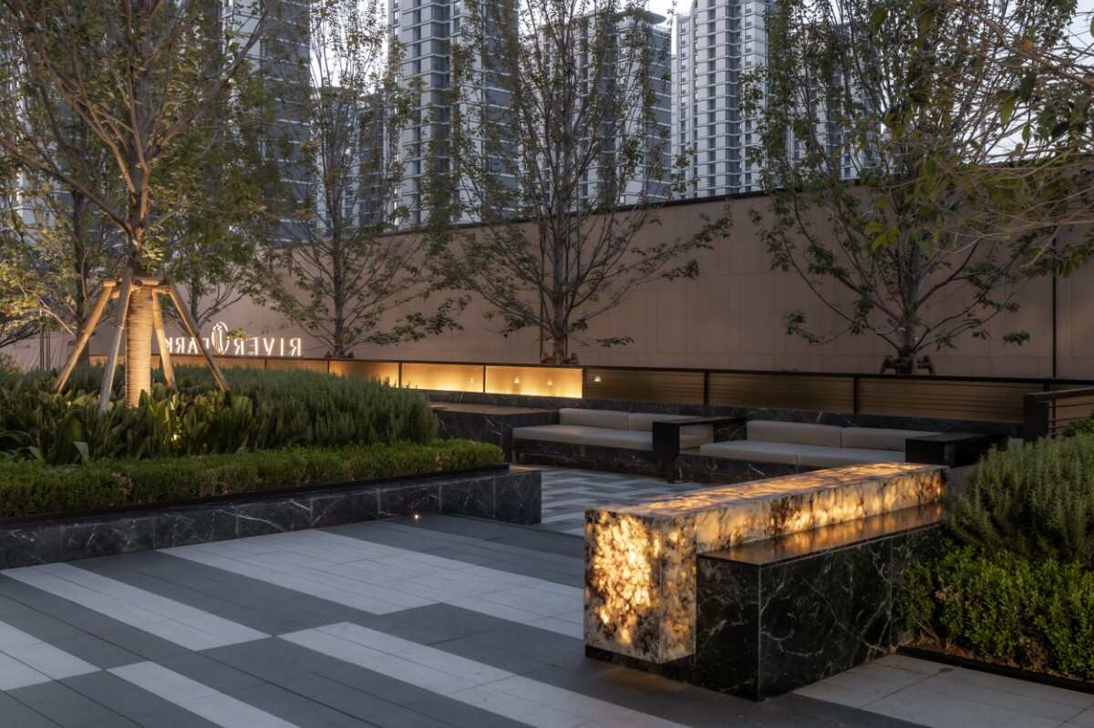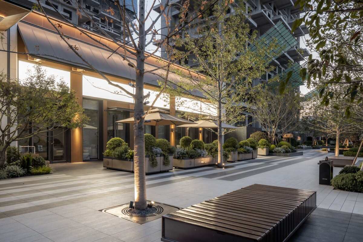 本項(xiàng)目以“三幕十二境” 為核心框架,“三幕” 如敘事篇章,從入口的初見驚艷,到社區(qū)內(nèi)的沉浸體驗(yàn),再到歸家時(shí)的溫馨歸屬感,每一幕都蘊(yùn)含著精心設(shè)計(jì)的情感遞進(jìn);“十二境” 則像是散落其中的珍珠,每個(gè)場景都有其獨(dú)特的主題與景致,滿足了不同人群在不同時(shí)刻的景觀需求。在景觀營造上秉持 “輕奢文雅,詩意煙火” 的整體風(fēng)格,形成了兼具美學(xué)價(jià)值與人文溫度的獨(dú)特景觀體系。